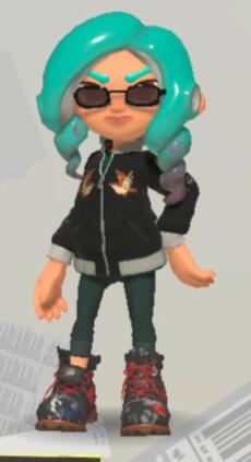 Info: K.C is Neon's producer and roadie, and Agent 8's roommate. 8 dragged her to one of the Squidbeak's casual lunches and K.C and Neon hit it off almost immediately (with a little prompting from Marie). It also works as an EVP salmon runner but doesn't touch ranked because of The Incident (getting rolled over by a dynamo while arguing with Neon). K.C got too embarrassed to go back.They enjoy old music tech but will absolutely splurge on the highest quality headphones for even casual listening (in great contrast to Neon who's rocking earbuds that have been through the wash like 5 times). She also enjoys fun jackets and is working on a battle jacket of her own.