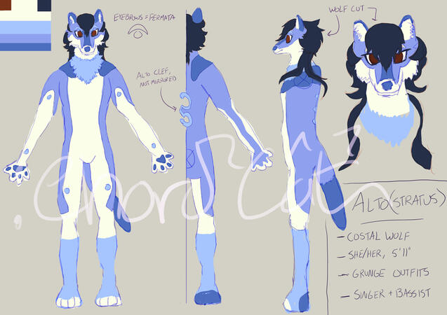Info: My fursona, plays keyboard in a 5-piece band (still working on the others), fan of weird and layered clothing